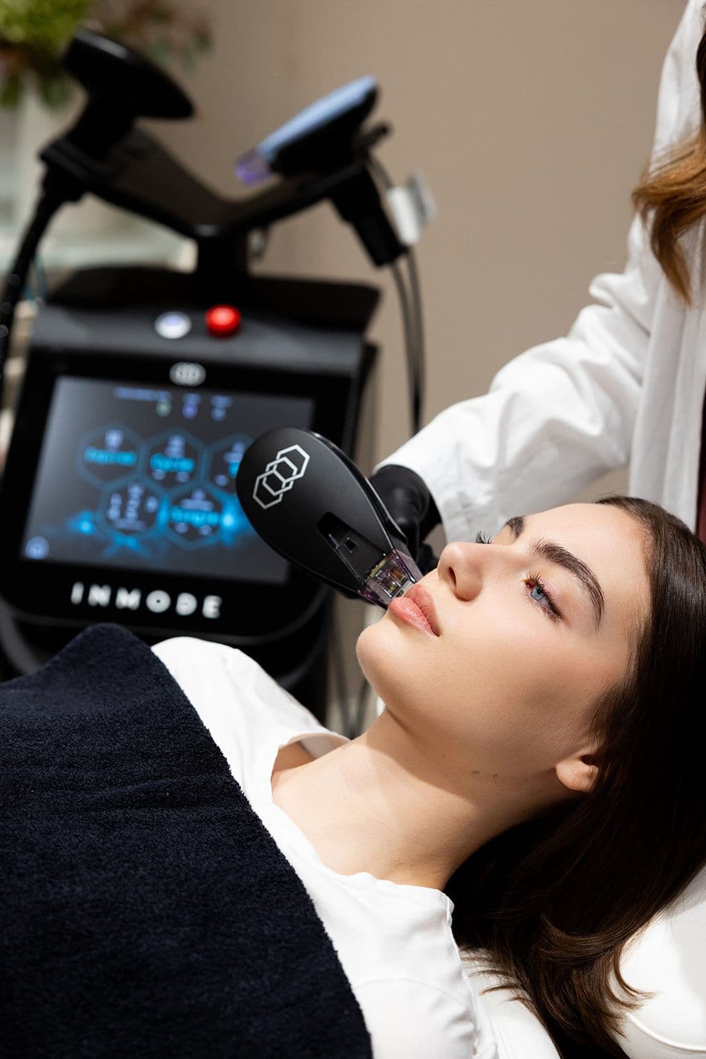 The Optimas® by InMode® platform, used at Studio Aimi, integrates several advanced technologies for skin rejuvenation, collagen stimulation, and the targeted treatment of specific skin imperfections.